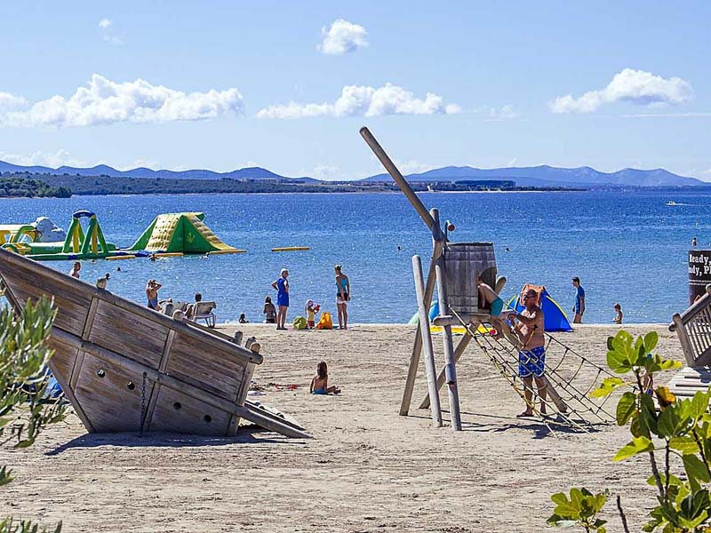 Denne ferieby med både lejligheder og mobilhomes ligger 2km fra Nin og 16km nord for Zadar. Feriebyens areal på 100ha er beplantet med pinjetræer, så I oplever her typisk Middelhavsstemning.