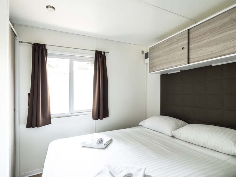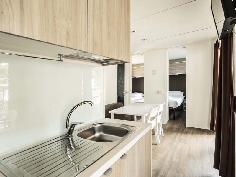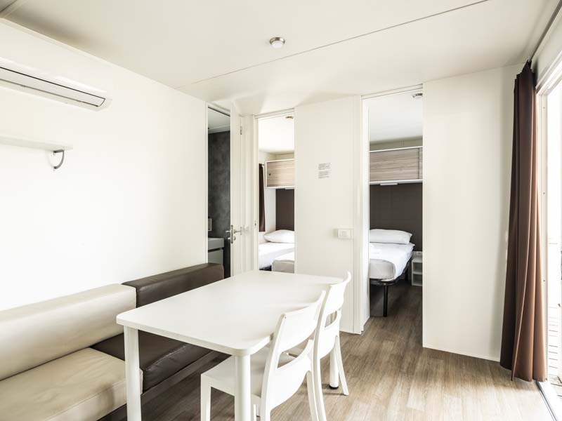MB Premium 34,4m2 består af stue / spisestue (sovemulighed), køkkenhjørne (gaskomfur med 4 ringe, mikroovn, ovn, kaffemaskine og kedel, køleskab, madlavningstilbehør og bestik), dobbeltværelse (queensize-seng), 2 dobbeltværelser (4 enkeltsenge), 2 x bad / toilet - delvis overdækket gårdhave