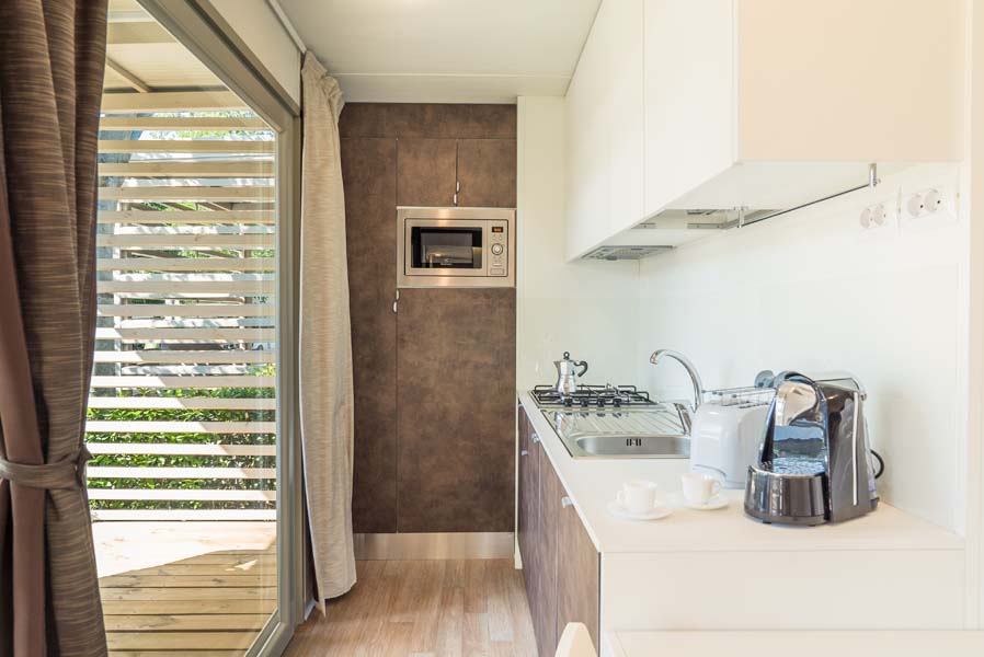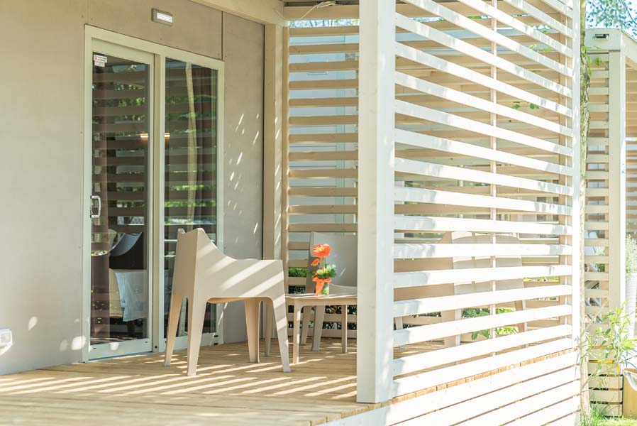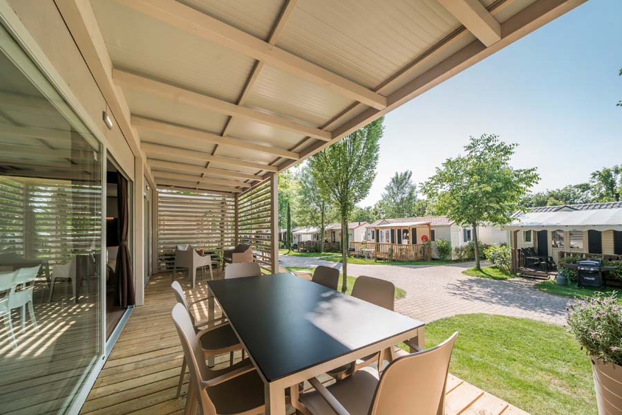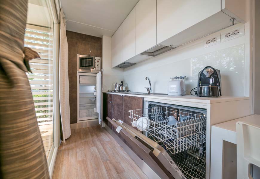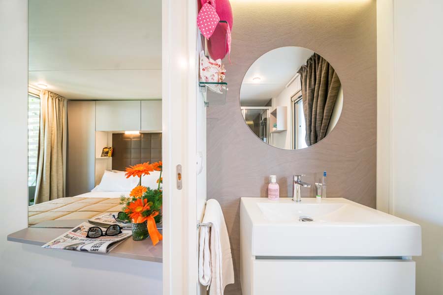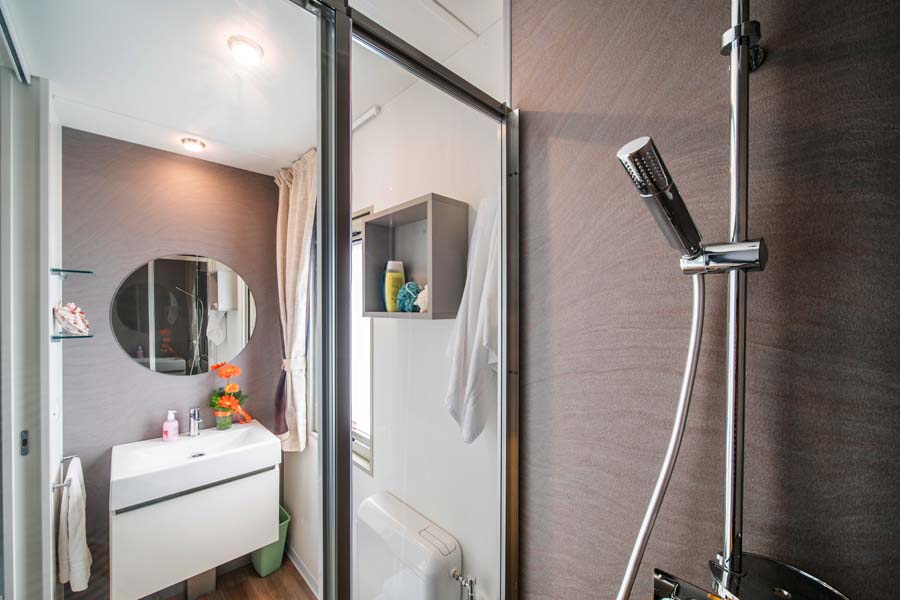 hu stay Excellence i sofistikeret design og med luksusmøbler er hele 58 m2. Lyse rum, luksus indretning og udstyret med total komfort i tankerne. Den 22 m2 store terrasse smelter sammen med opholdsstuen og sammen dannes en perfekt ramme for afslapning og familiehygge. Det fuldt udstyret køkken byder på bl.a. mikroovn, opvaskemaskine og kaffemaskine, der to soveværelser, det ene er med dobbeltseng og udgangs til terrassen og det andet med køjeseng og enkeltseng, samt hele 2 badeværelser med toilet og bad. Der er aircondition.