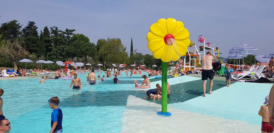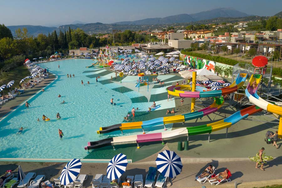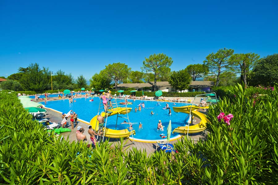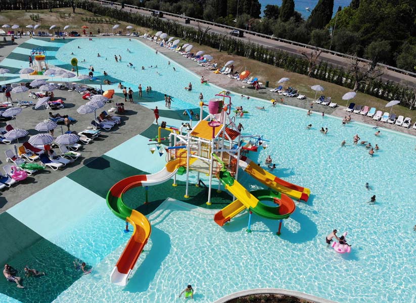 Den firestjernede campingplads ligger 300m fra Cisano og 2km fra Bardolino direkte ned til søen med egen privat sandstrand med liggestole og parasoller. Der er 2 poolområder med vandrutschebane, børnebassin, jacuzzi, liggestole, parasoller, legeplads, spillehal, internet, supermarked, restaurant, pizzeria, take-away, bar, minigolf, tennis, volleyball, fodbold, bordtennis, vaskerum og cykeludlejning. Der arrangeres i højsæsonen underholdning for hele familien. Der er 7km til Gardaland, en fantastisk forlystelsespark.
