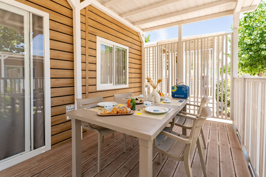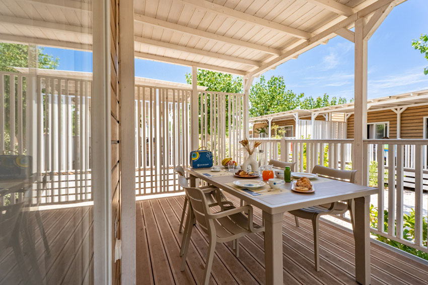 Dette mobilhome på 33m2 er moderne og venligt indrettet og har aircondition
